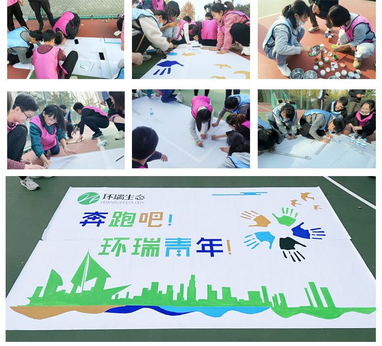 團(tuán)隊(duì)巨畫到底是多大的畫呢?看著地上兩張畫布,拼起來竟然長3米寬1.8米 !這幅畫繪制完成可不是一件簡單的事情,但這難不倒我們環(huán)瑞的“小畫師”們。考慮到畫要完美拼接起來,機(jī)智的小伙伴們將畫布合二為一,然后進(jìn)行分工。像對(duì)數(shù)字比較敏感的理工男們開始拿起尺子和鉛筆比對(duì)著尺寸;線條的勾勒和描邊這對(duì)平時(shí)在實(shí)驗(yàn)室工作的小伙伴們自然是不在話下;色彩搭配,顏色調(diào)和這對(duì)做設(shè)計(jì)的小伙伴來說也很得心應(yīng)手。小伙伴們不僅根據(jù)自己的所長積極投入到創(chuàng)作中來,還把工作中認(rèn)真細(xì)致,一絲不茍,精益求精的精神,淋漓盡致發(fā)揚(yáng)到巨畫中來。