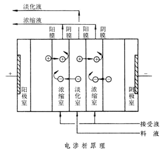 電滲析法處理技術是膜分離技術的一種。這種污水除氟技術是在外加直流電場作用下,利用離子交換膜的選擇透過性(即陽膜只允許陽離子選擇透過,陰膜只允許陰離子選擇透過),使水中陰、陽離子作定向遷移而將氟離子分離出來的方法。該法主要適用于苦咸水淡化、工業用純水、超純水制造。