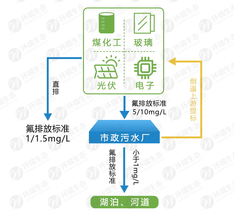 一些下游的污水處理廠能夠通過合并多股廢水的方式稀釋總排水的氟濃度,但各地區(qū)環(huán)保局紛紛對相對應(yīng)的污水處理廠提高含氟廢水的標(biāo)準(zhǔn)至小于1mg/L,進而導(dǎo)致污水處理廠反過來限制上游的各類產(chǎn)生含氟廢水工廠只能排放比以往更低的含氟廢水。
